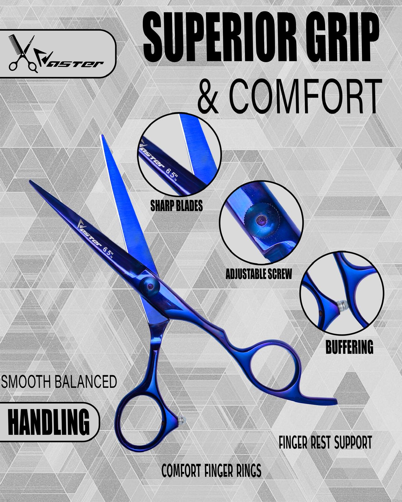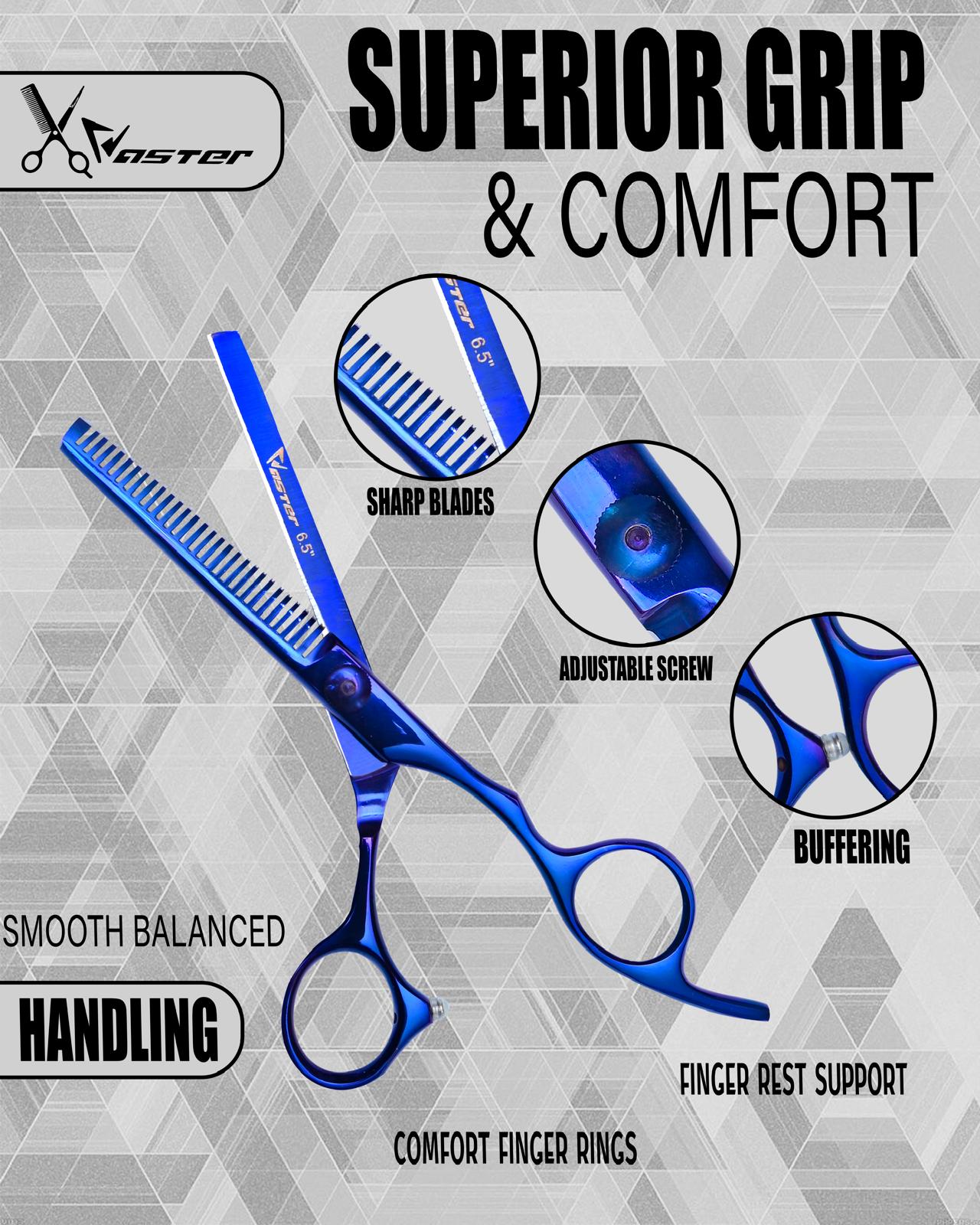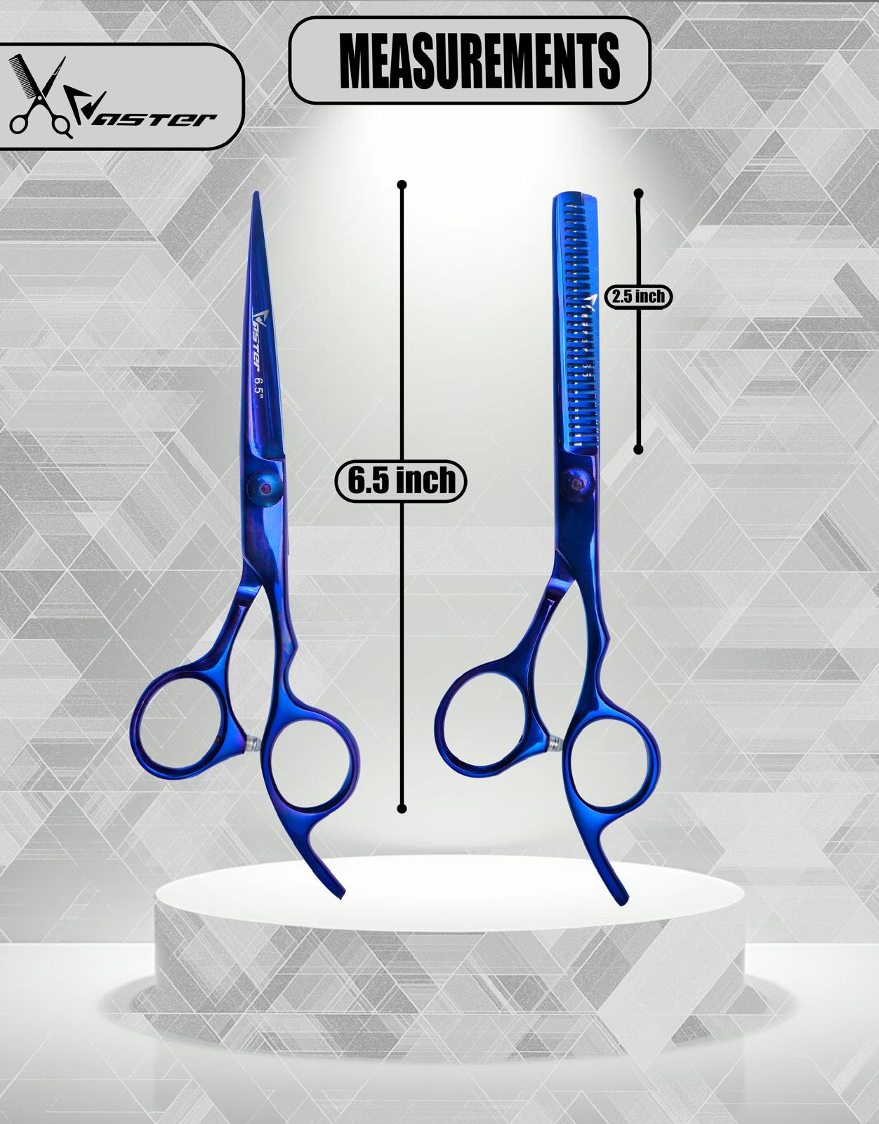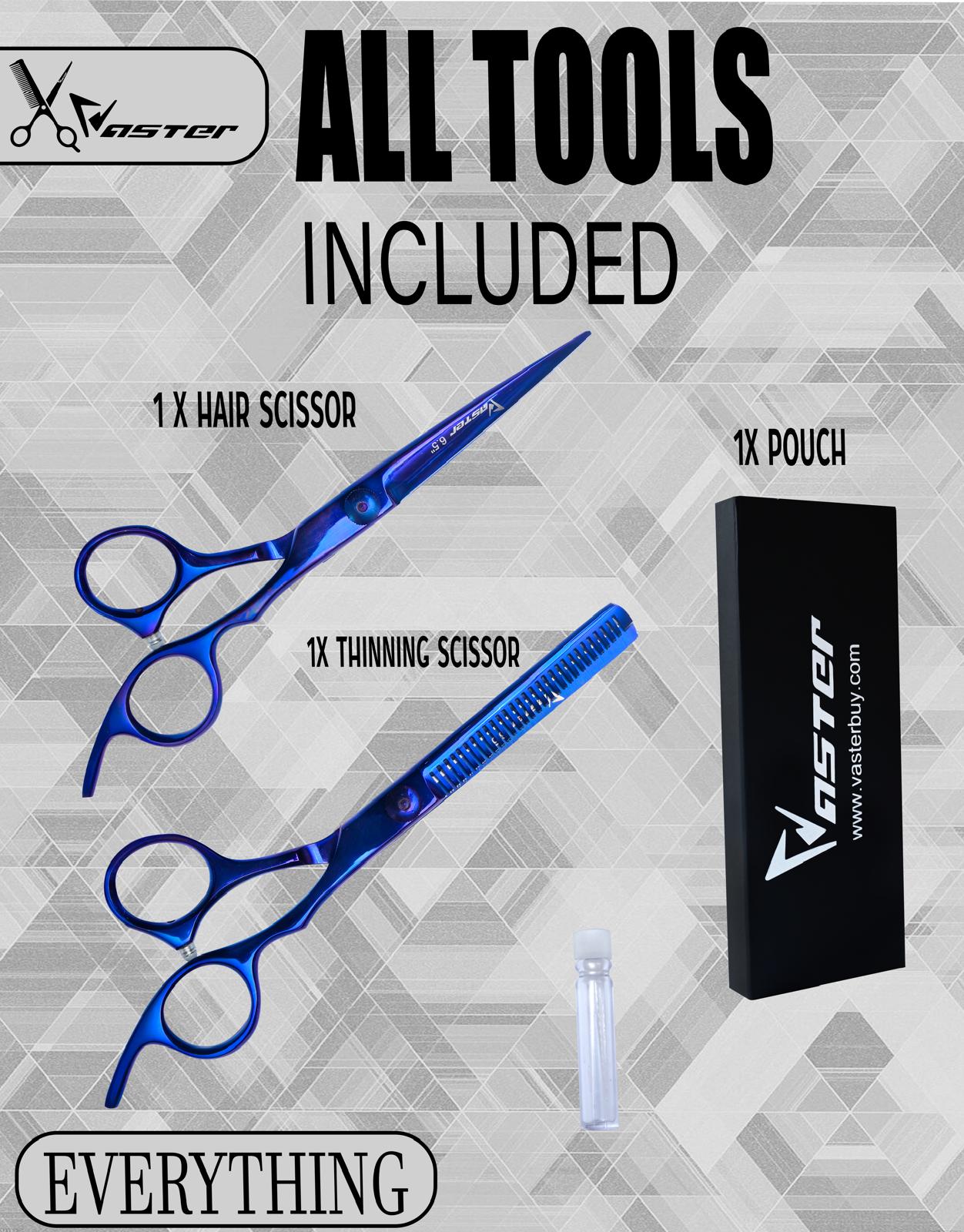 Finished with a sleek premium blue coating, the Vaster scissors offer both style and long-lasting performance. The kit includes all essential tools to help you achieve salon-quality results.